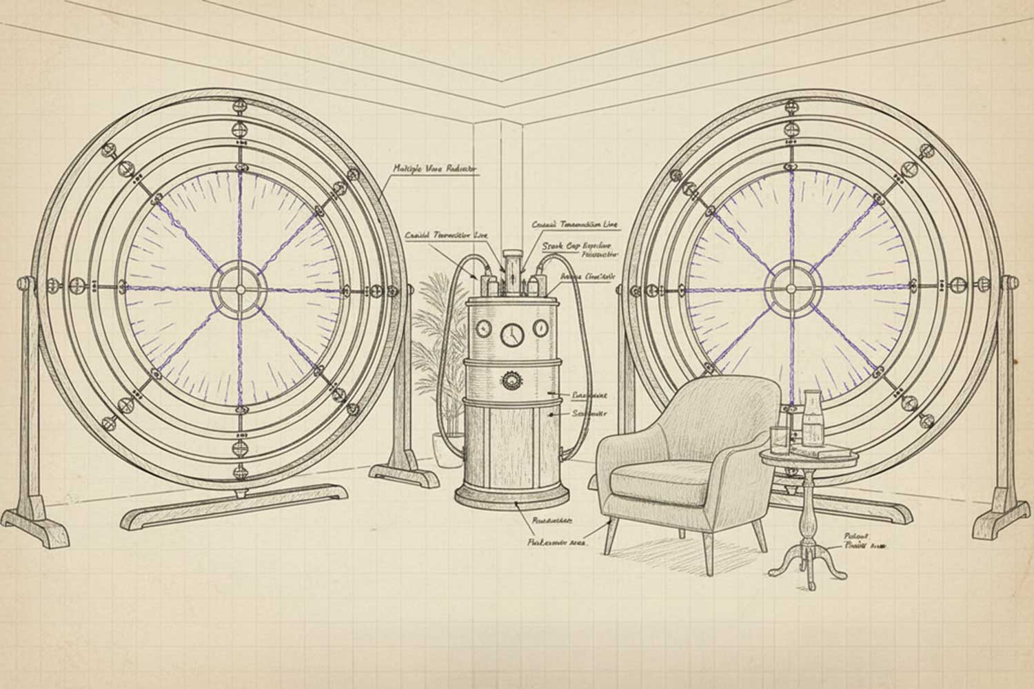 The Lakhovsky Multiple Wave Oscillator is a frequency-based wellness device originally developed in the early 20th century by Georges Lakhovsky. It generates a wide range of oscillating electromagnetic frequencies simultaneously, creating an energetic field around the body during a session.